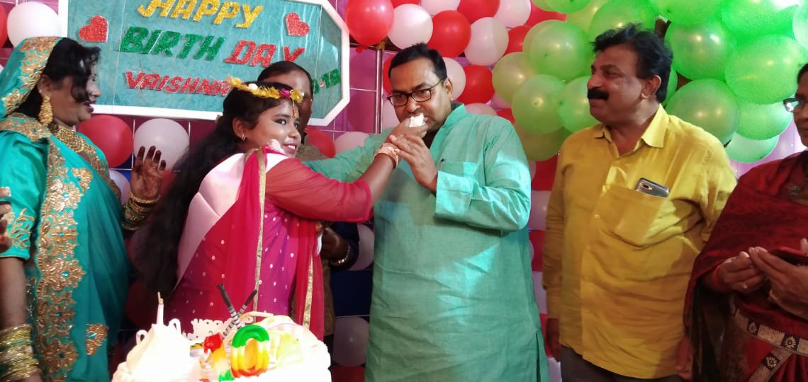 तकरीबन 8:00 बजे अपने पूरे परिवार और रिश्तेदारो एवं करीबियों के बीच वैष्णवी ने अपने जन्मदिन पर केक काटकर दसवीं जन्मदिन हर्षोल्लास के साथ मनाया। इस दौरान वैष्णवी ने अपने माता पिता से आशीर्वाद ली और माता-पिता ने भी चंदन लगाकर बेटी का आशीर्वाद दिया।